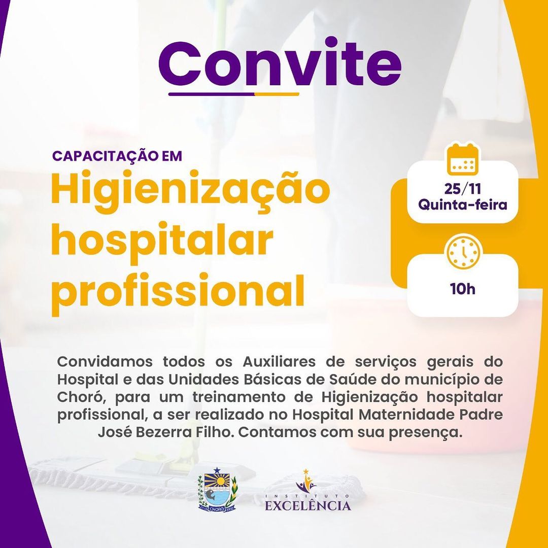 Capacitação em Higienização Hospitalar. Mais detalhes, no post. Link para o post AQUI.