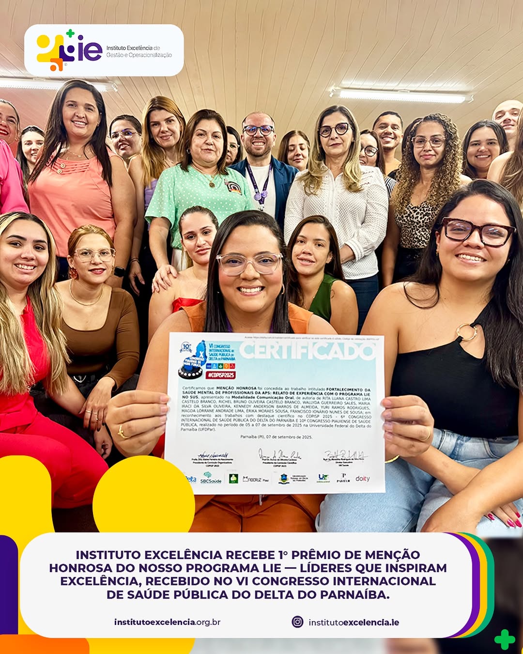 Essa foto carrega a alegria e o reconhecimento do Instituto Excelência pelo 1° Prêmio de Menção Honrosa do nosso Programa LIE — Líderes que Inspiram Excelência, recebido no VI Congresso Internacional de Saúde Pública do Delta do Parnaíba, em parceria com a Fiocruz | Piauí e a Universidade Federal do Delta do Parnaíba. 🏆 Estar entre profissionais da saúde e ao lado da secretária de saúde de Tauá, Sayonara Cidade, torna esse momento ainda mais especial. Esse prêmio é reflexo de um trabalho construído com propósito, dedicação e compromisso com o desenvolvimento humano e a excelência em saúde pública. 💙 Seguimos firmes na missão de inspirar pessoas e transformar realidades!